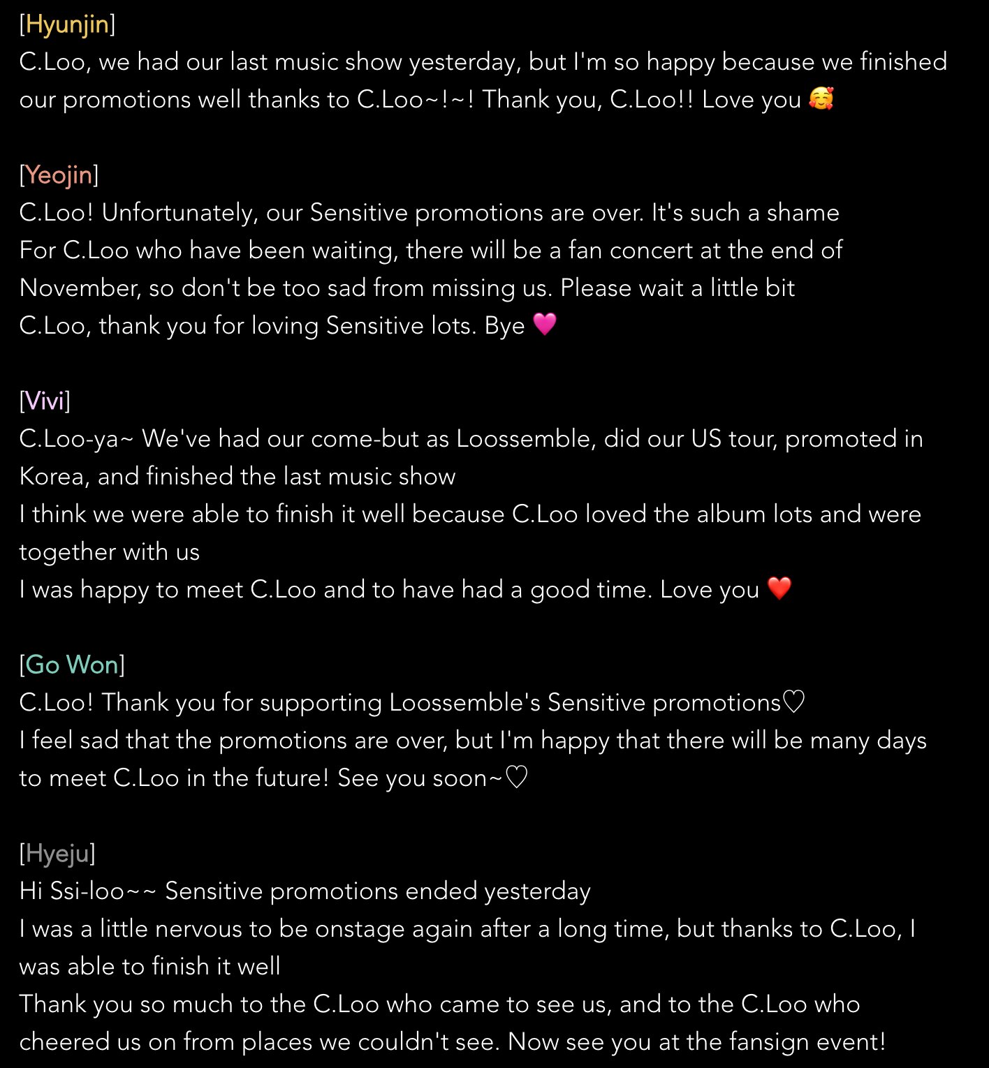 LOONA’s Subbits on X: “[ENG] 231031 #Loossemble messages for